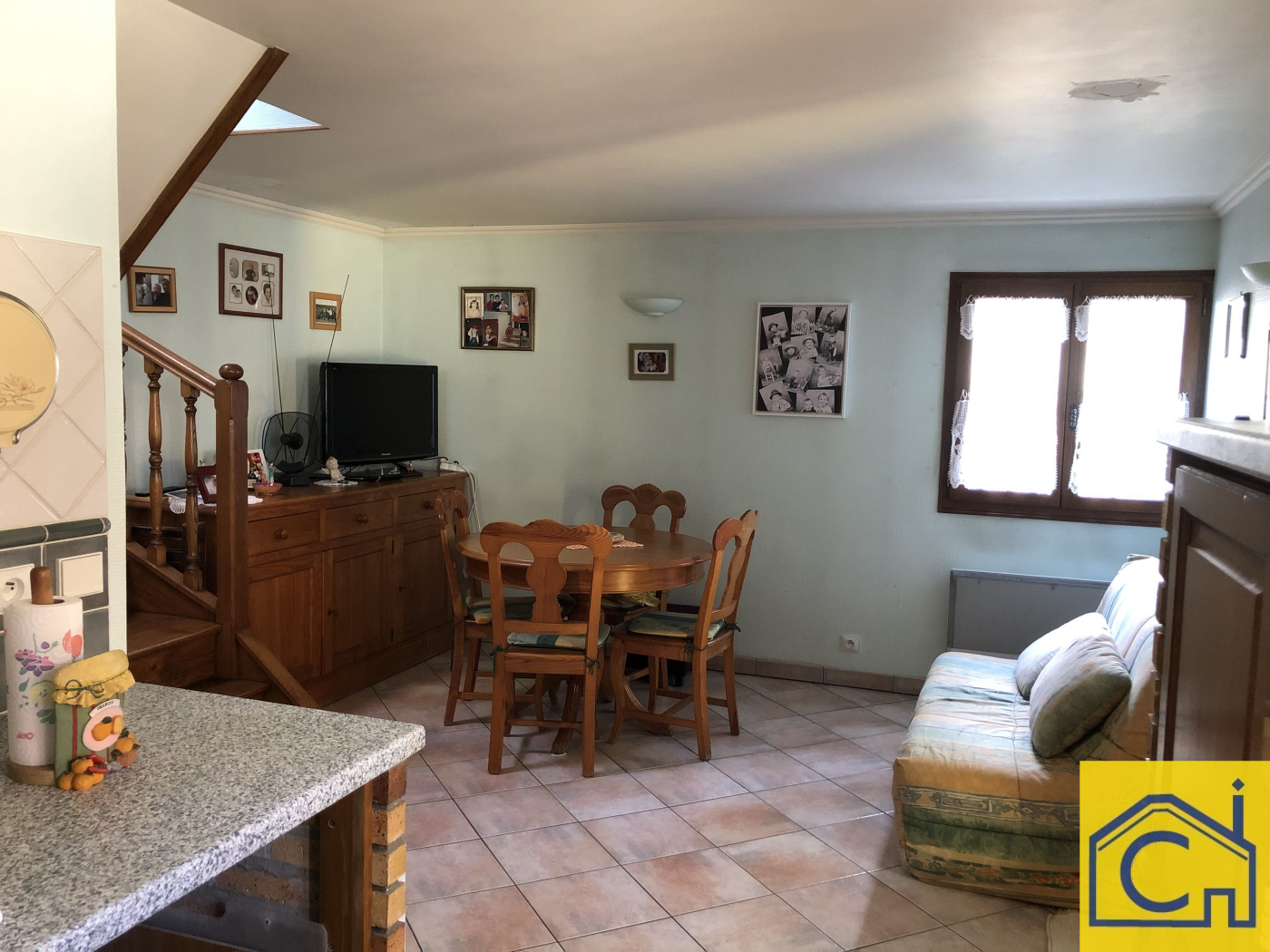 Une petite maison d'une surface d'environ 30 m² composée d'une cuisine aménagée ouverte sur séjour avec terrasse, salle d'eau wc, à l'étage 2 petites chambres. Elle dispose également d'un sous-sol avec garage.